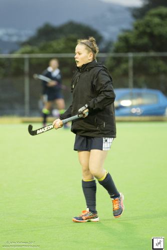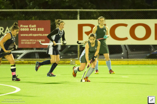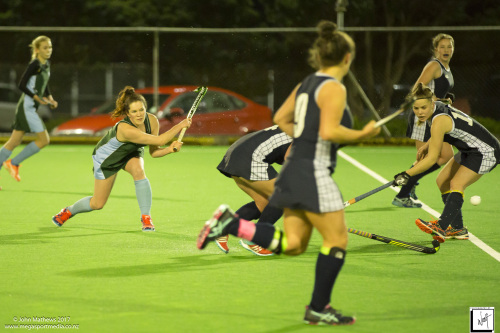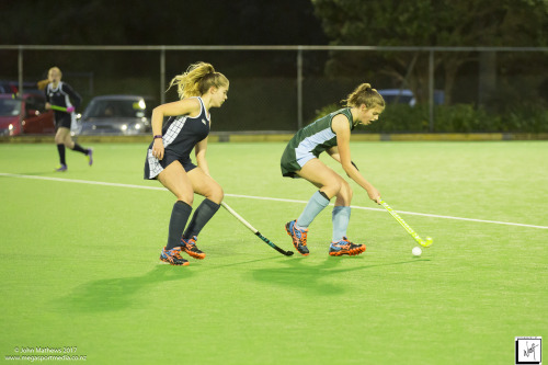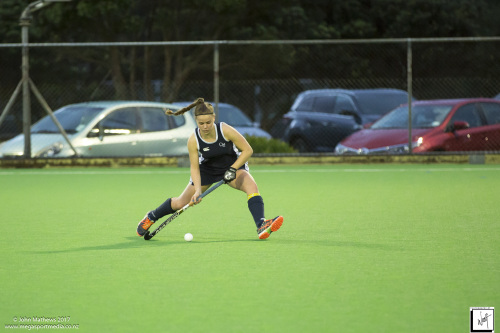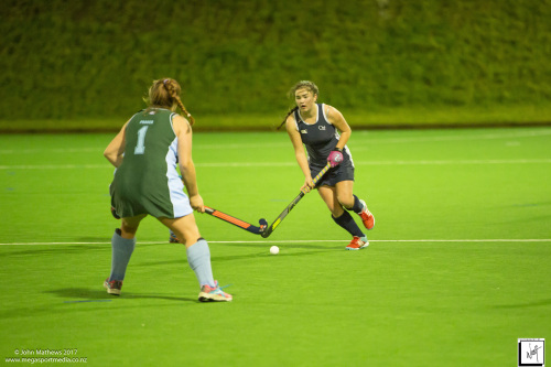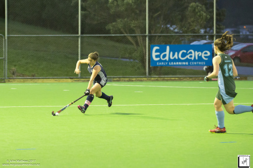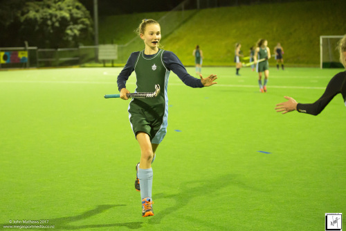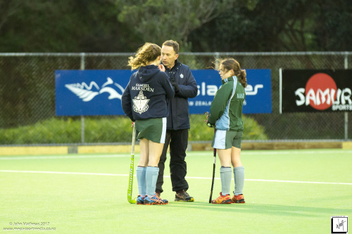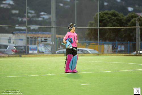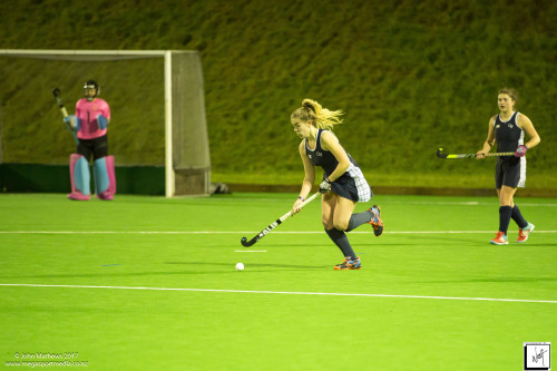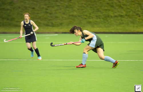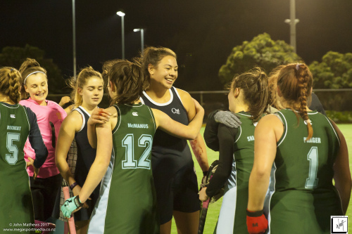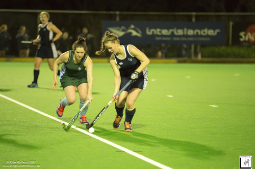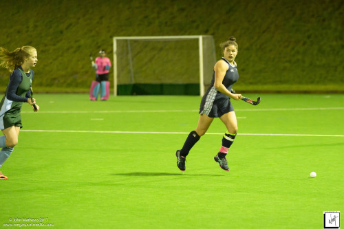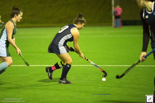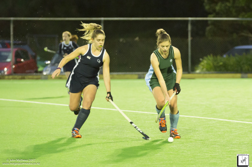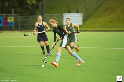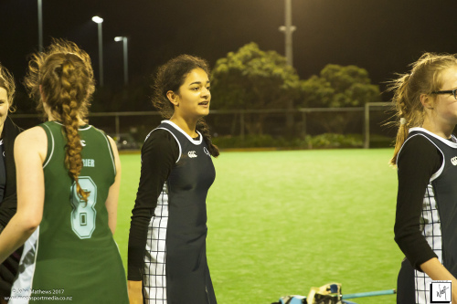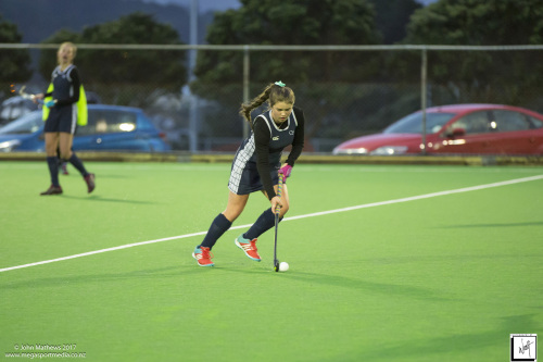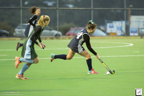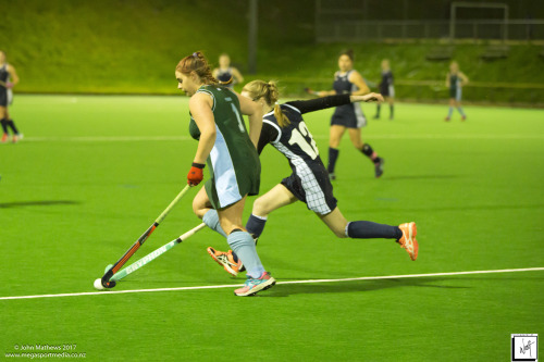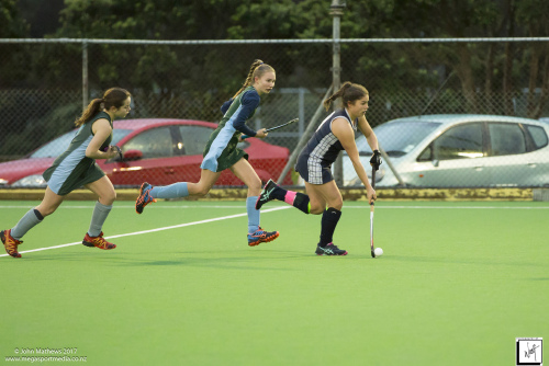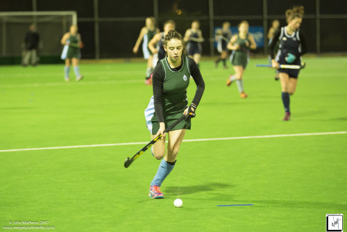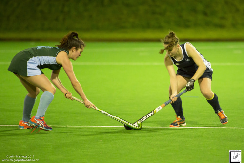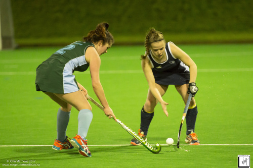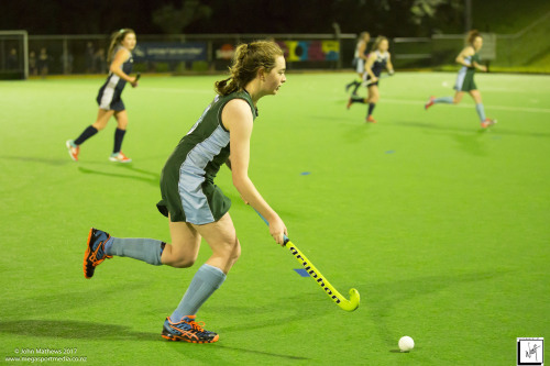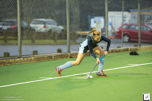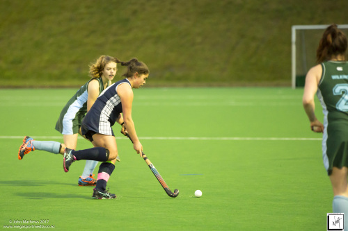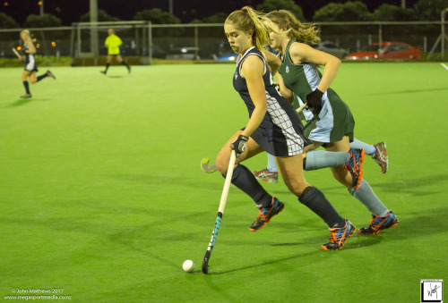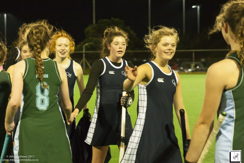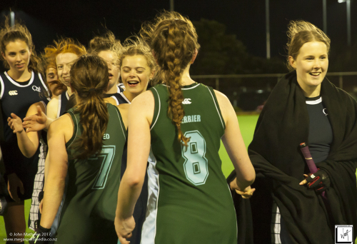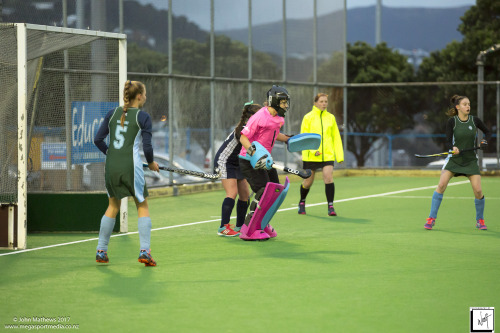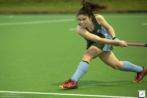 Images captured on 28 July 2017 of the Secondary School Girls Premier 1 hockey match between Queen Margaret College (navy) and Samuel Marsden Collegiate (green) played at the National Hockey Stadium, Wellington, New Zealand won by Queen Margaret College 2-0 Copyright: John Mathews 2017.