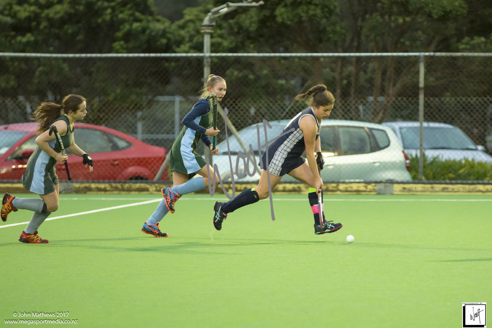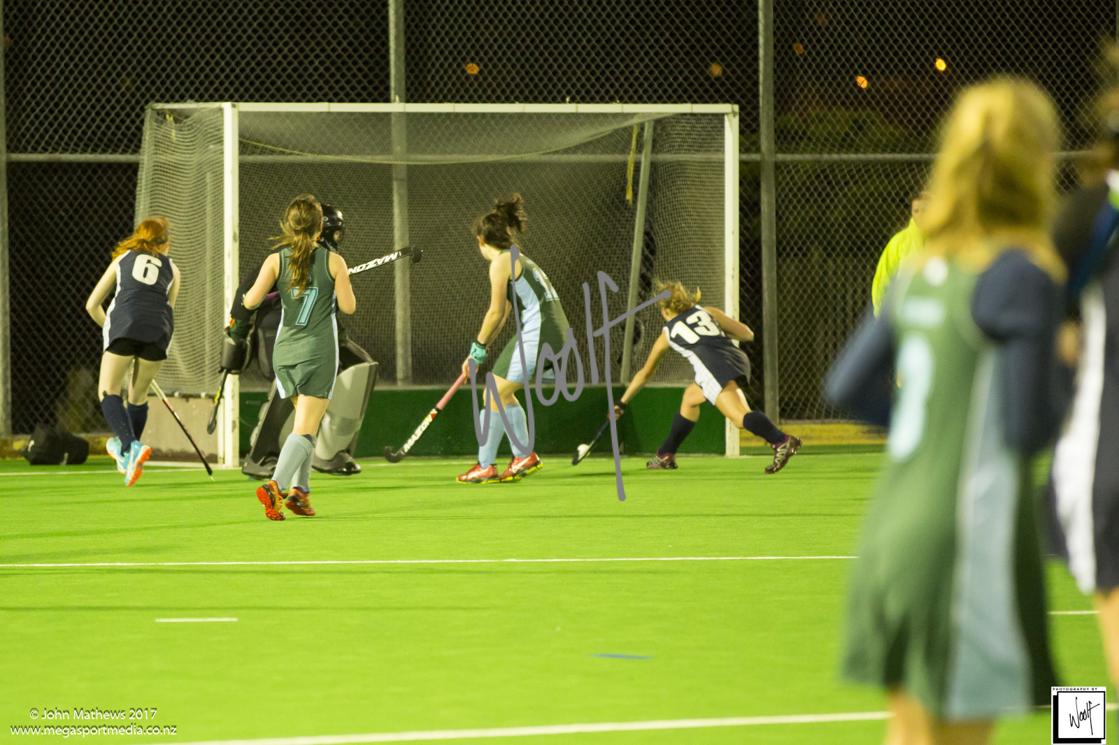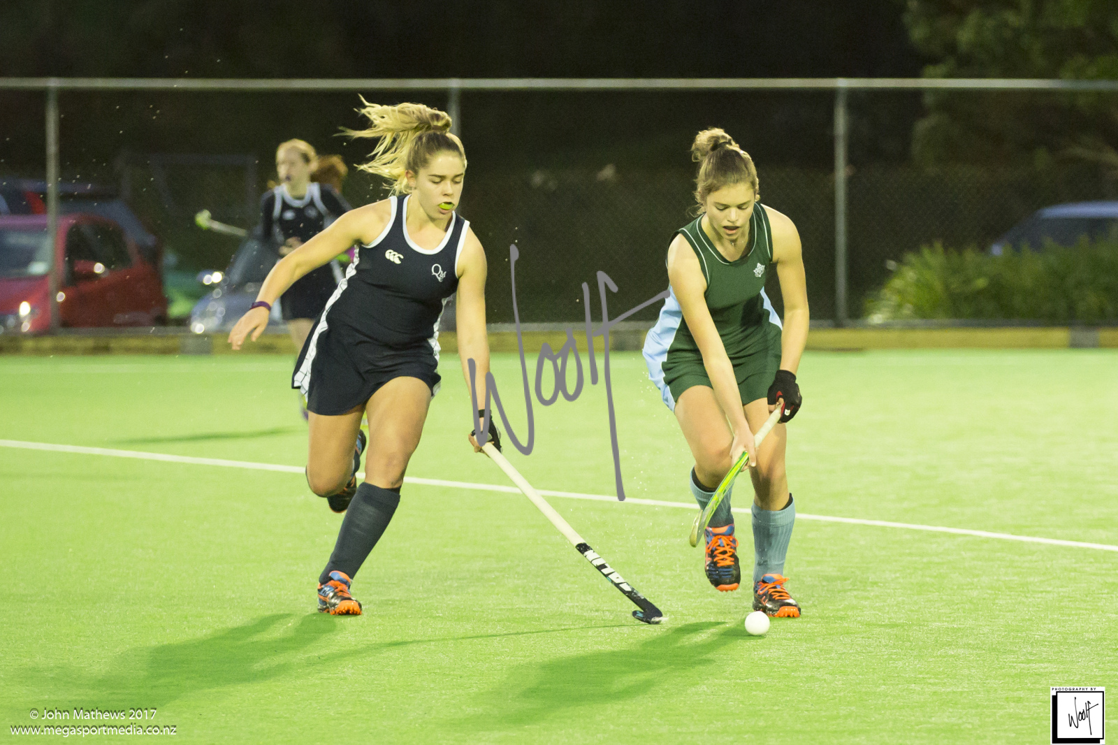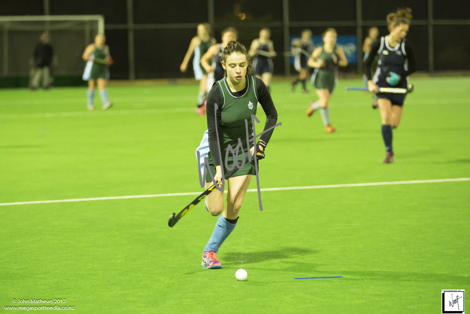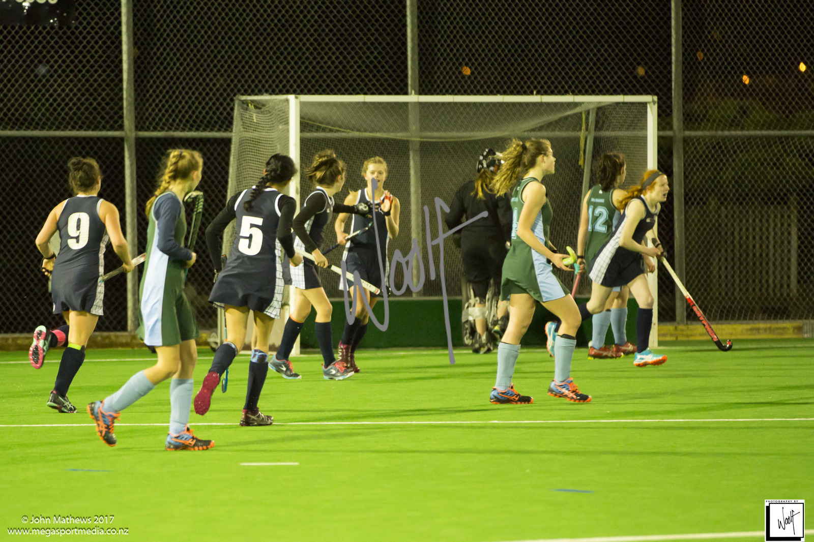 Images captured on 28 July 2017 of the Secondary School Girls Premier 1 hockey match between Queen Margaret College (navy) and Samuel Marsden Collegiate (green) played at the National Hockey Stadium, Wellington, New Zealand won by Queen Margaret College 2-0 Copyright: John Mathews 2017.