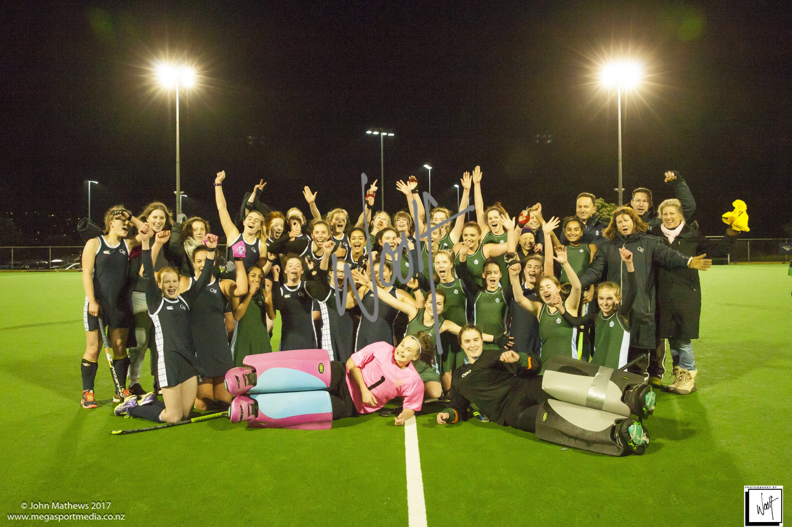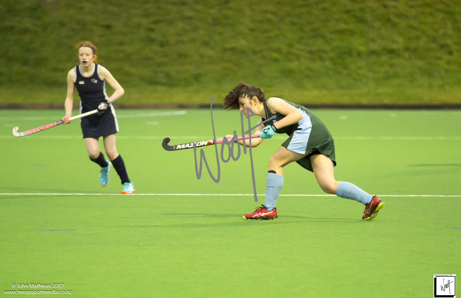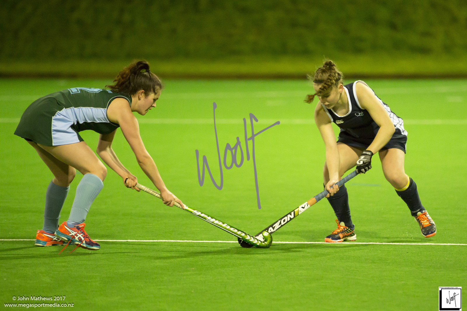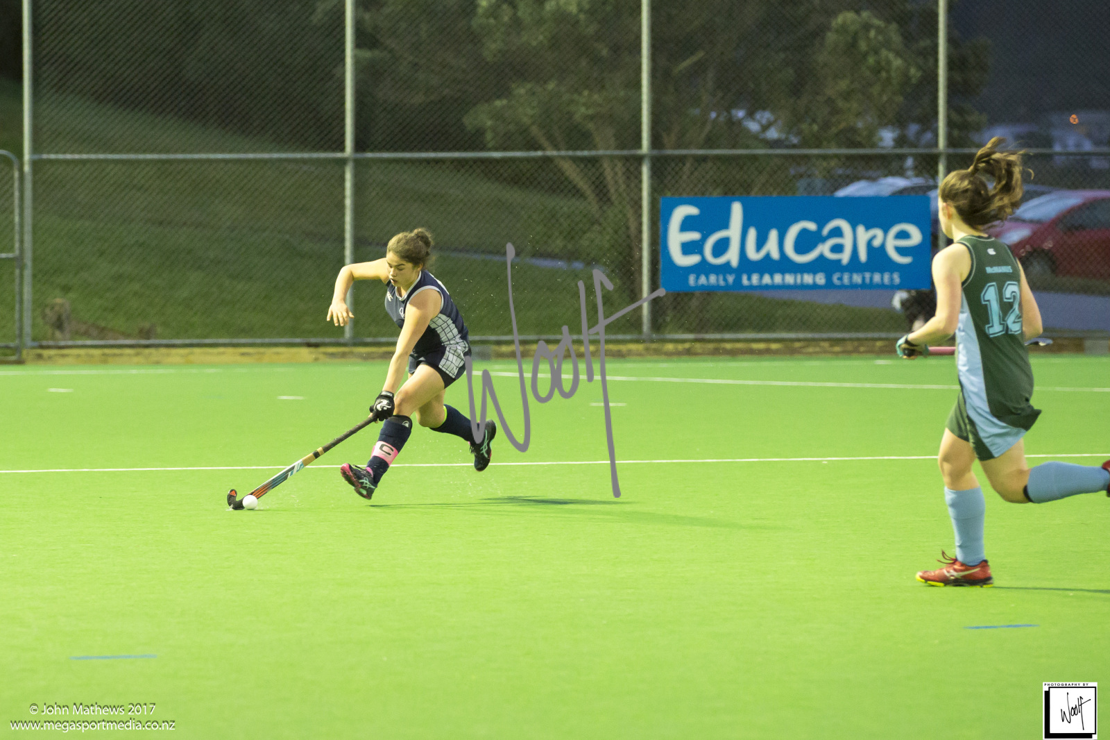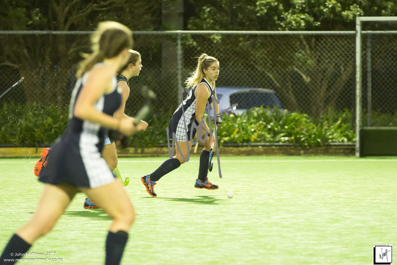 Images captured on 28 July 2017 of the Secondary School Girls Premier 1 hockey match between Queen Margaret College (navy) and Samuel Marsden Collegiate (green) played at the National Hockey Stadium, Wellington, New Zealand won by Queen Margaret College 2-0 Copyright: John Mathews 2017.