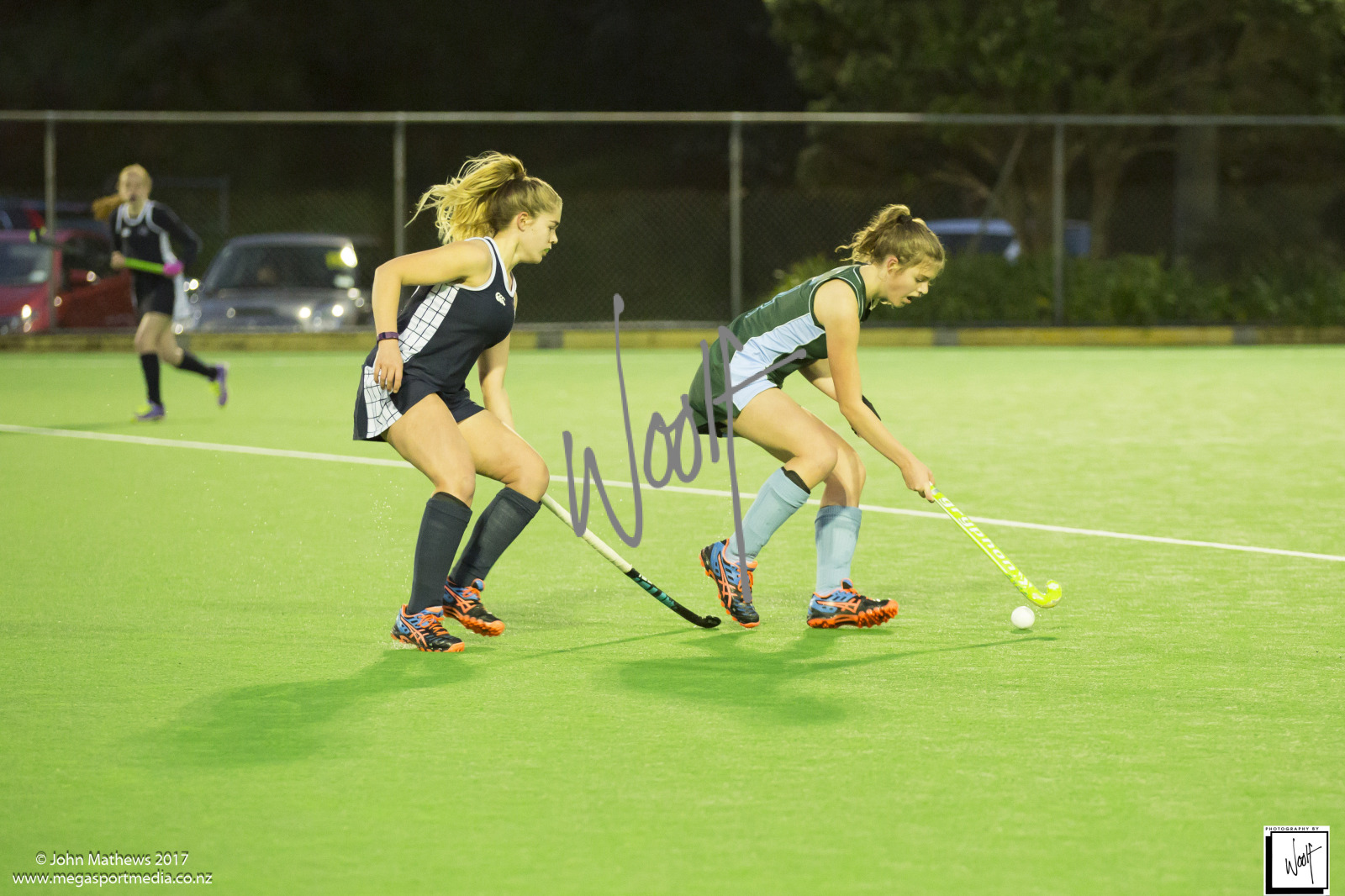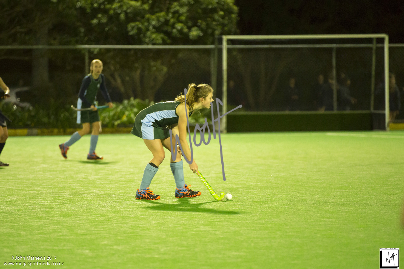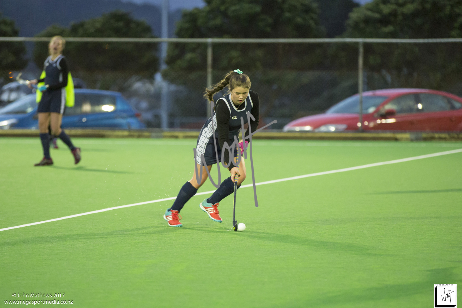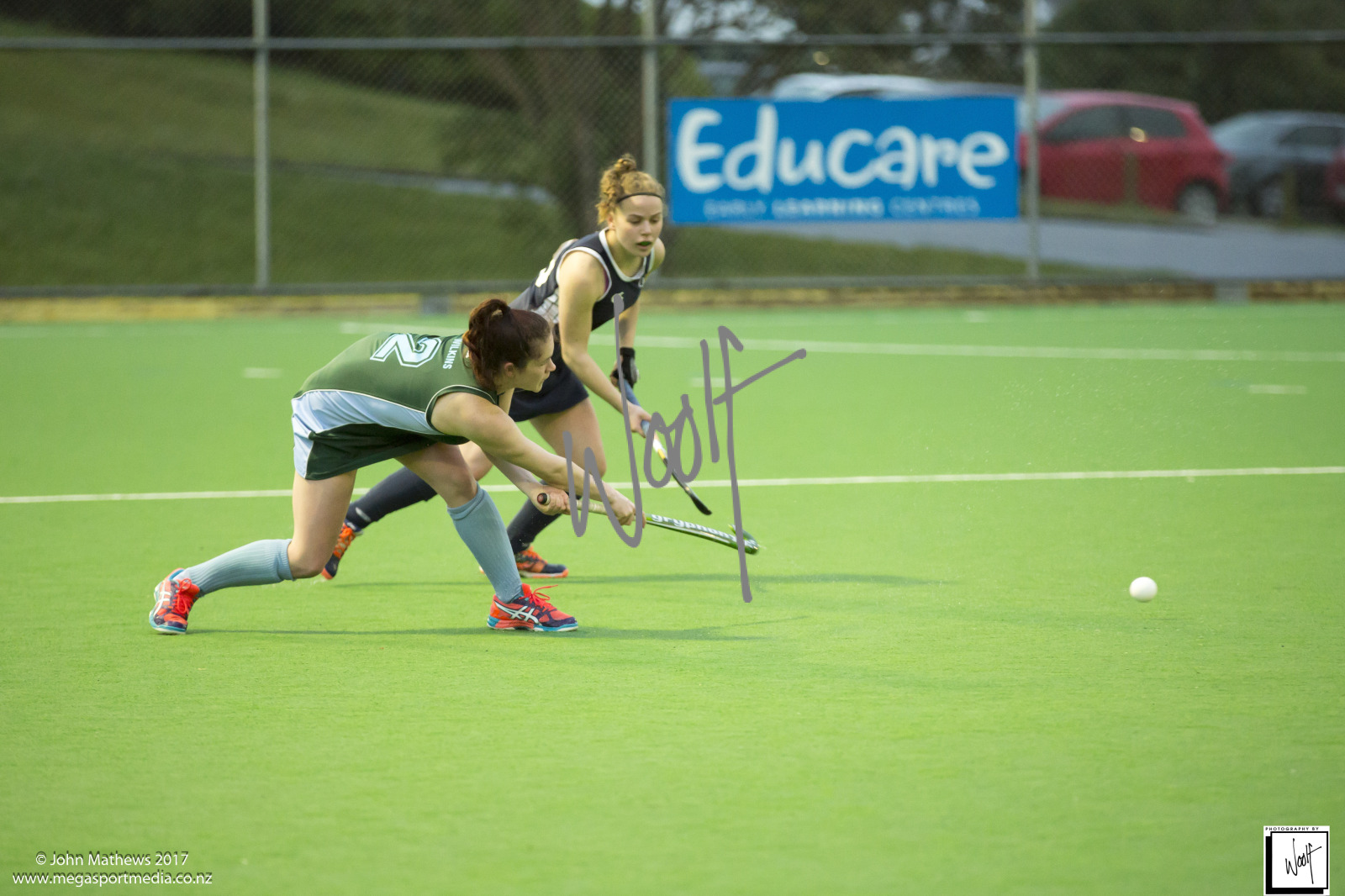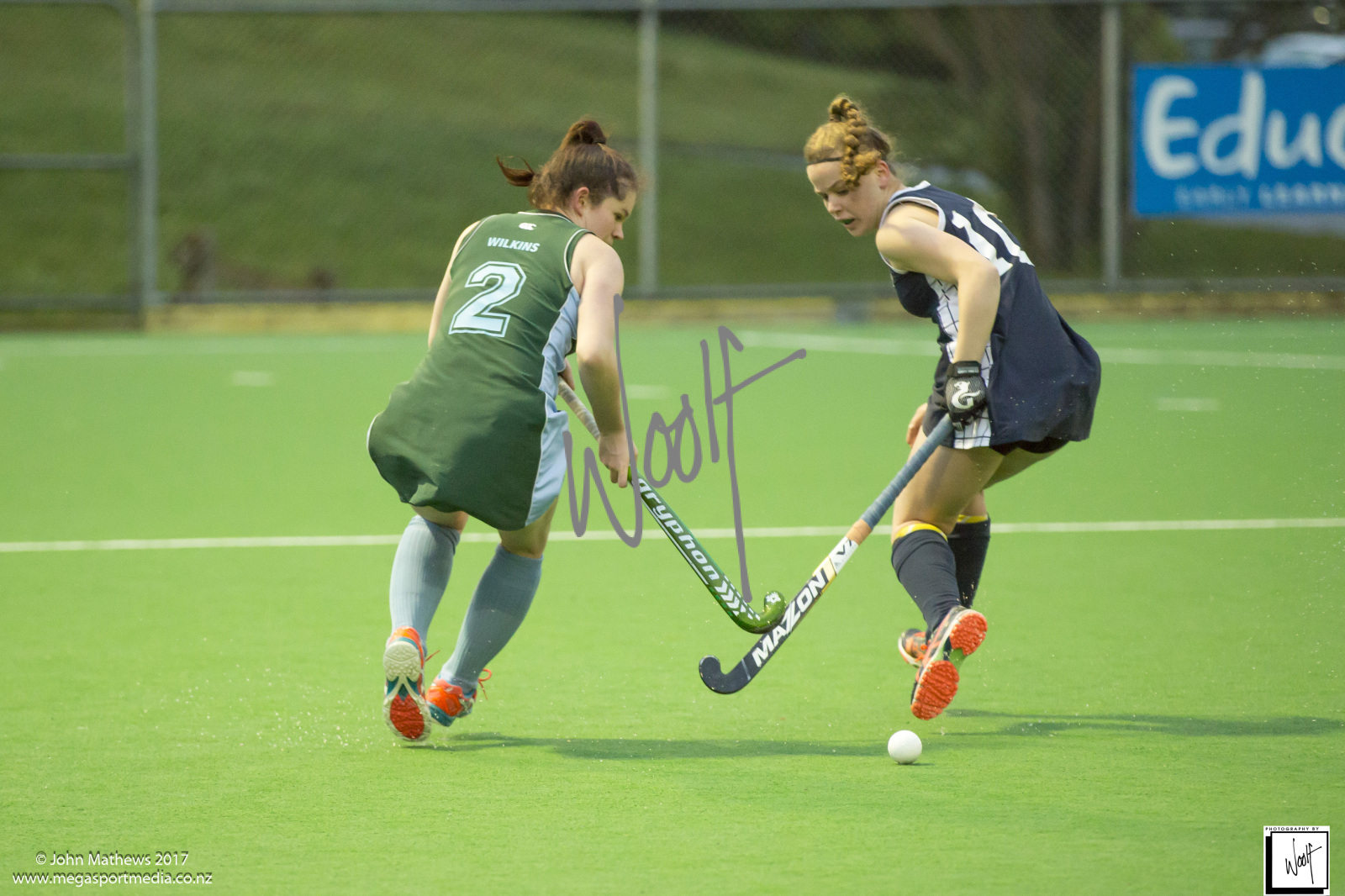 Images captured on 28 July 2017 of the Secondary School Girls Premier 1 hockey match between Queen Margaret College (navy) and Samuel Marsden Collegiate (green) played at the National Hockey Stadium, Wellington, New Zealand won by Queen Margaret College 2-0 Copyright: John Mathews 2017.