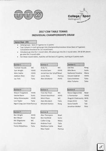 Images captured on 4 August 2017 of the 2017 CSW Table Tennis Individual Championship played at the Empire Table Tennis Club, Petone, Lower Hutt, New Zealand. Copyright: John Mathews 2017.